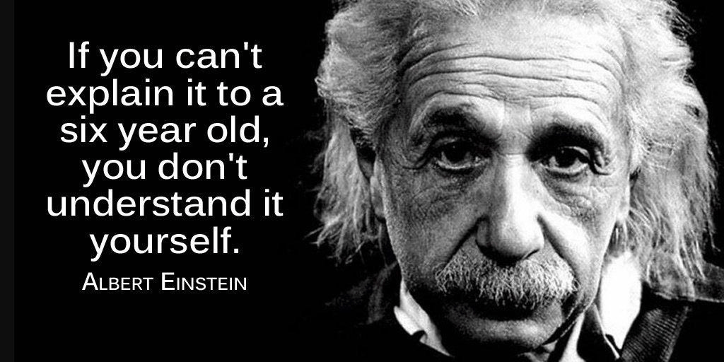 In the words of Albert Einstein “If you can’t teach it to a six year old, you don’t understand the subject yourself”.
