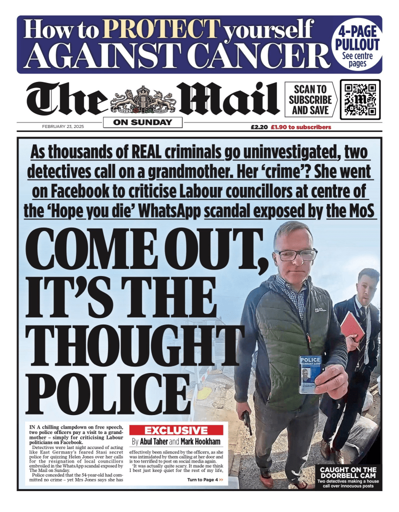A 53 year old grandmother was visited by the police last week having criticized the Labour Party and PM Kier Starmer. The grandmother was intimidated by the police presence and commented that “it made me think I best keep quite for the rest of my life”.