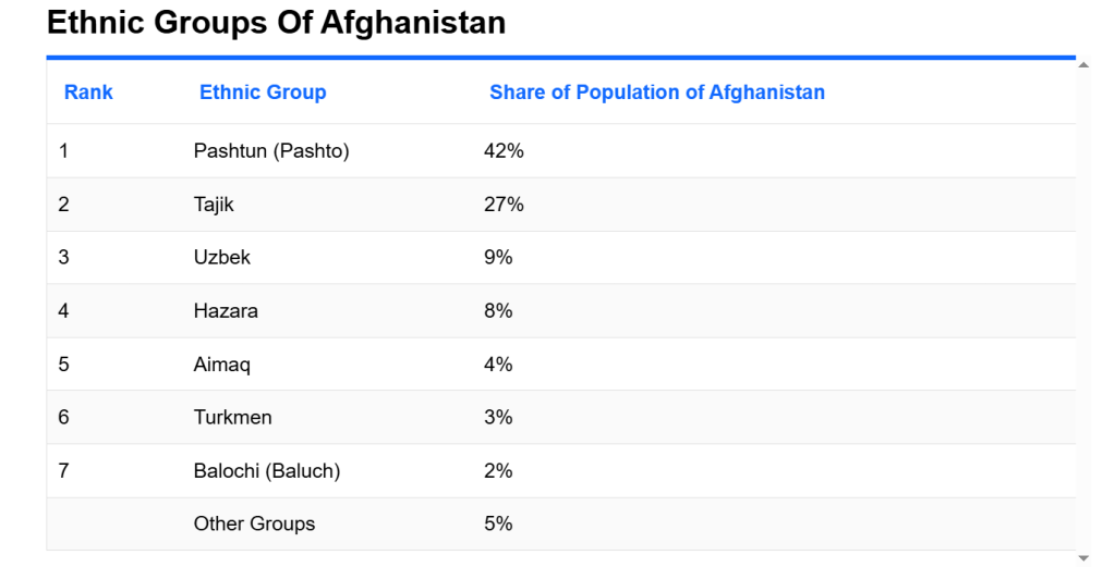 In Afghanistan, there are several ethnic groups and two major religious communities.