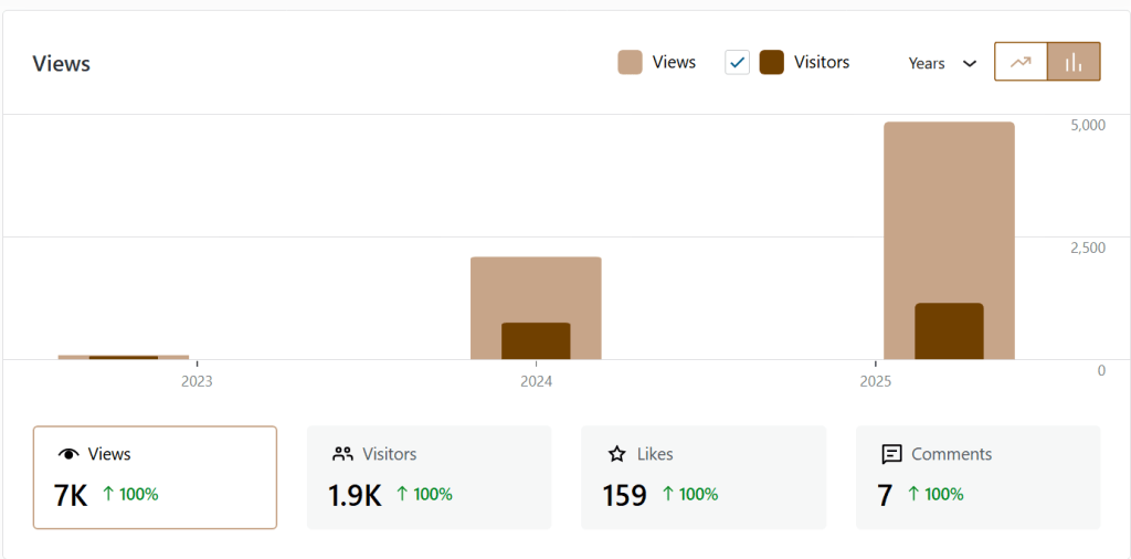 - Readers from 46 countries have read Uncharted Thoughts (up by 9 countries from 2024)